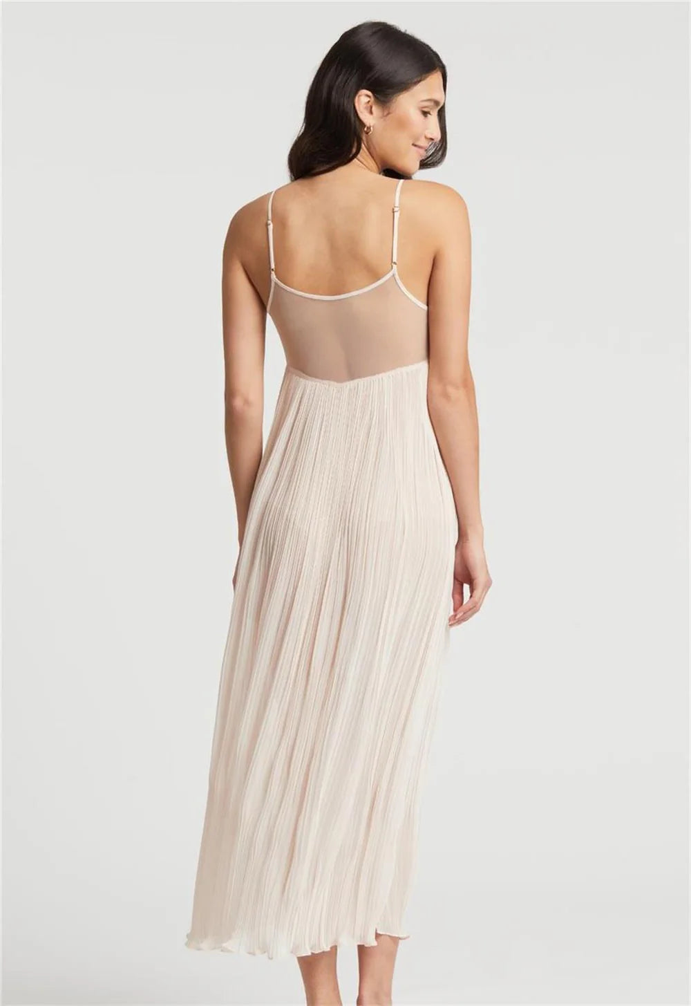 A playful yet romantic piece that uses crystal pleating to lay around the body. Under the bust lies detailed and delicate flower appliques that elongate the forgiving skirt, while the sheer back entices to be drawn closer to one’s true love. Perfect for the bride, she can feel sexy, beautiful, sophisticated and at ease in True Love. Make it a perfect pair with the True Love Robe.